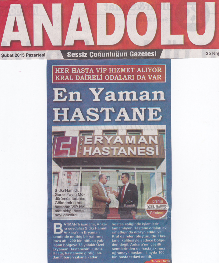 Batman'lı iş adamı, Ankara sevdalısı Sıdkı Hamidi Ankara'nın Eryaman semtinde müthiş bir yatırıma imza attı. 200 bin nüfusa yaklaşan bölgeye 75 yataklı Özel Eryaman Hastanesini kurdu.
