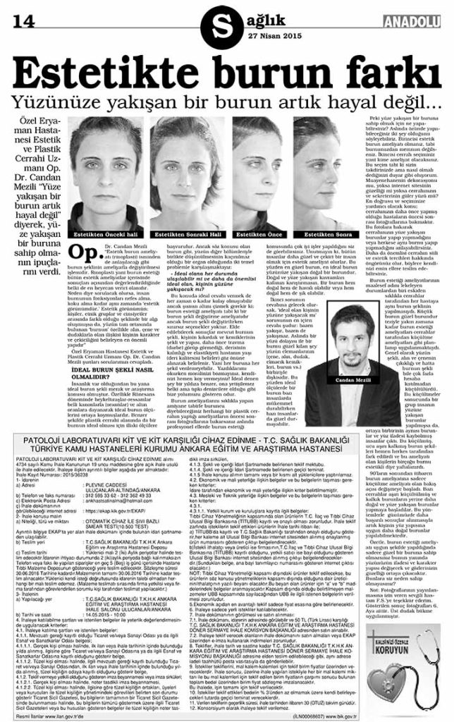 Özel Eryaman Hastanesi Estetik ve Plastik Cerrahi Uzmanı Op. Dr. Candan Mezili "Yüze yakışan bir burun artık hayal değil" diyerek, yüze yakışan bir buruna sahip olmanın ipuçlarını verdi.